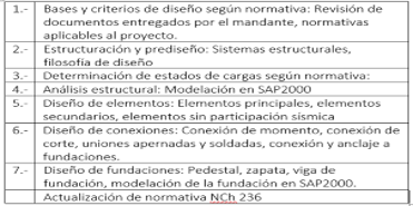 • Analizar, comprender y aplicar las normativas chilenas al diseño de estructuras industriales. • Estructurar y redactar una memoria de cálculo.
