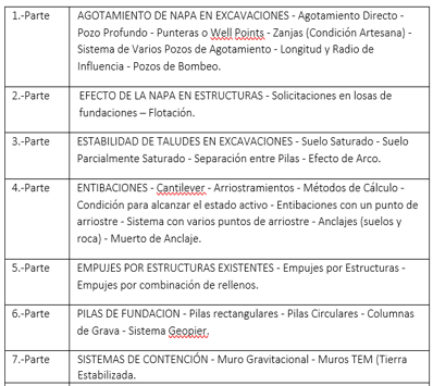 El Objetivo es que el alumno conozca y sea capaz de calcular los parámetros necesarios para el diseño todas las obras necesarias para la construcción de Fundaciones y sistemas de depresión de napas subterráneas. Además, se dará énfasis en el uso del Software Geoslope aplicado a cálculos de estabilidad de taludes, filtraciones y diseño de pilas.
